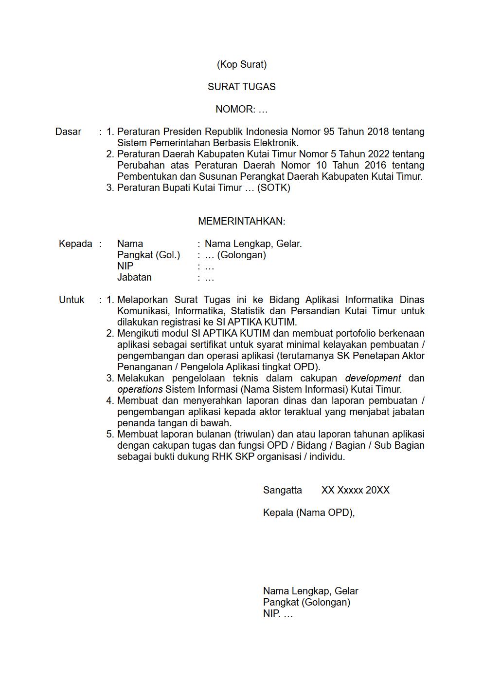 Template Surat Tugas Pengelola Teknis Aplikasi Daerah